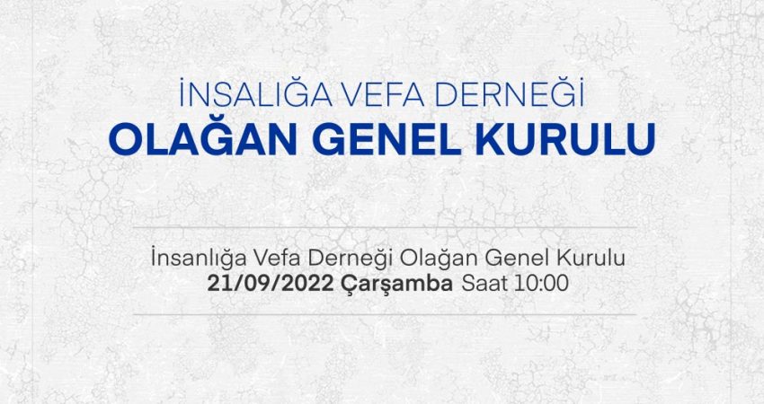 Eylül 16, 2022 İnsanlığa Vefa Derneği Olağan Genel Kurulu
